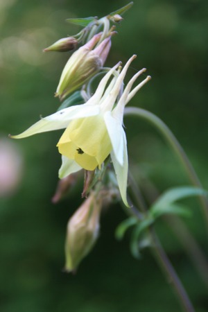 オダマキの一種で距(花冠のつけ根が後ろに伸びた部分)が長く、黄色の綺麗な花を咲かせます。